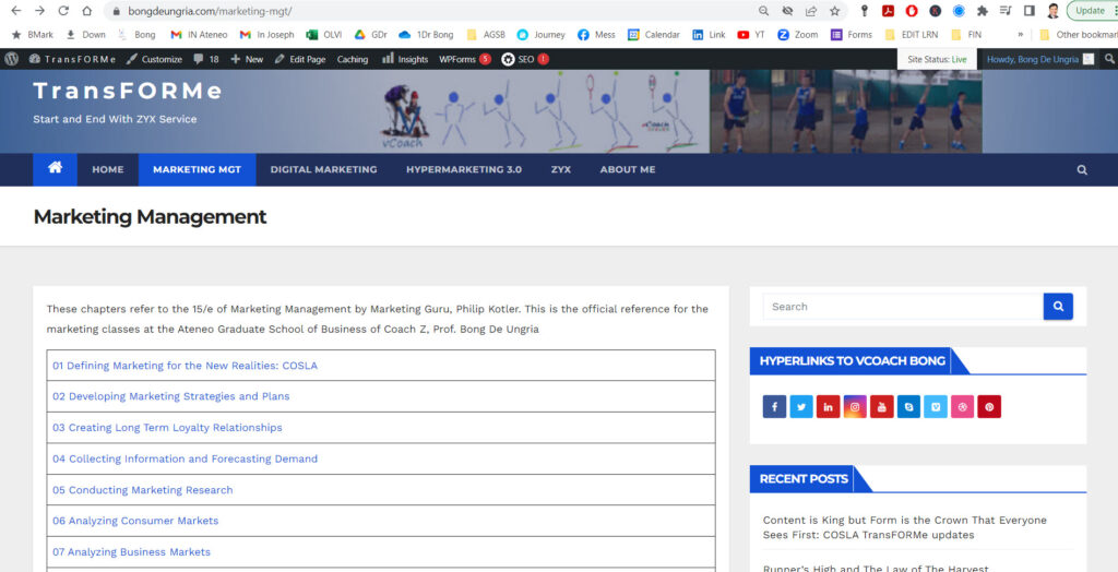 Blog page with links to Kotler Chapters with Excellent COSLA video submissions