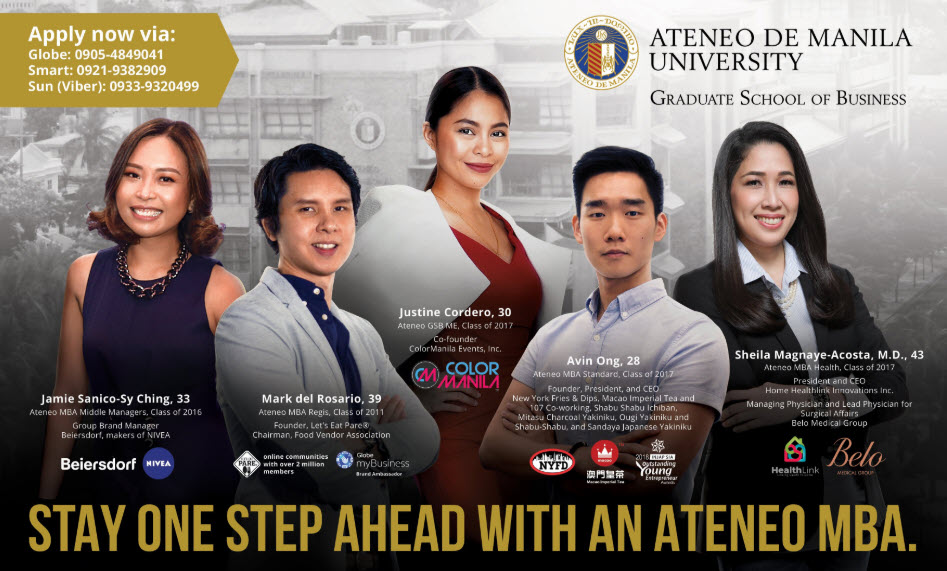 “For the AGSB, THE thrust is to make students “primus inter pares” (first among equals), recognizing them as workplace-based professionals who are leaders in their respective organizations. It gives premium to learning that is distilled from both classroom and business experiences, wherein one experience enriches the other. Theories learned are validated and made relevant in the workplace, and work experience is deepened and given structure in academic life.”