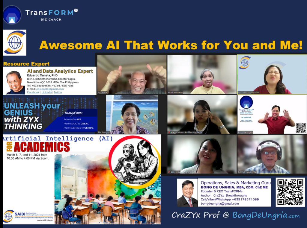 Here are some pictures from an Awesome Day 1 of 3 SAIDI (Southeast Asian Interdisciplinary Institute Graduate School of OD and Planning) seminar: Artificial Intelligence for Academics led by Dr.Ed Canela, AI and Data Analytics Expert.