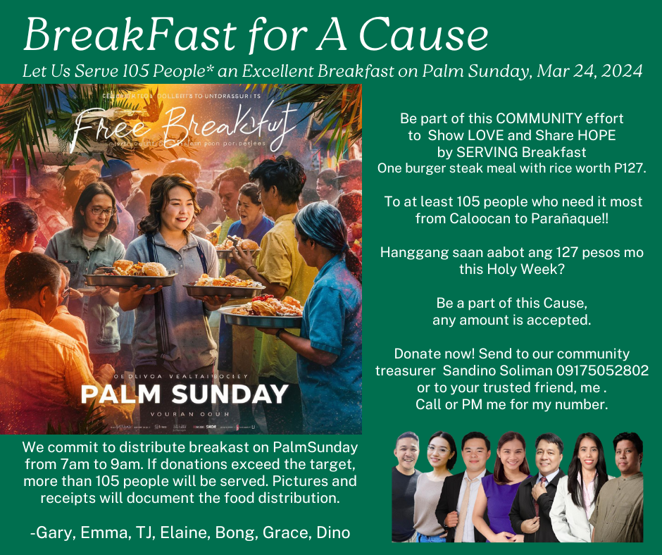 Together, let’s make this Palm Sunday memorable for those in need. Every P127 helps, every smile counts. Let’s BREAK a FAST and spread a FEAST of GENEROSITY!
