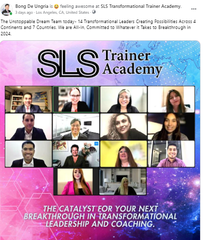 Below is one of the sessions at SLS Trainer Academy where our Four Filipino trainers trained with 10 other Transformational Leaders across 4 Continents and 7 Countries.