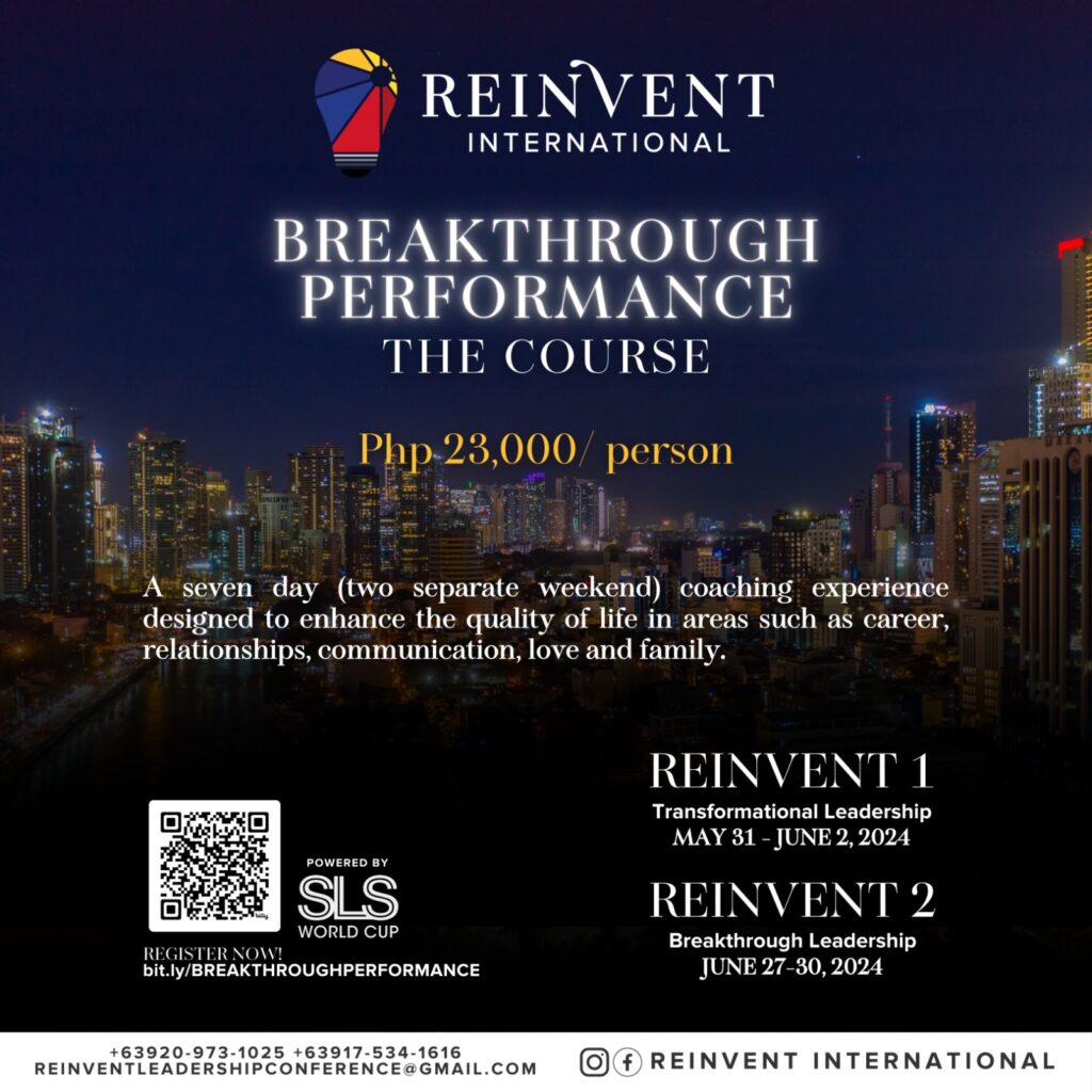 Join us for a life-changing event: โBreakthrough Performance, the Courseโ: a 7 Day Experience that enhances quality of life in areas such as Career, Relationships, Communication, Love, and Family.