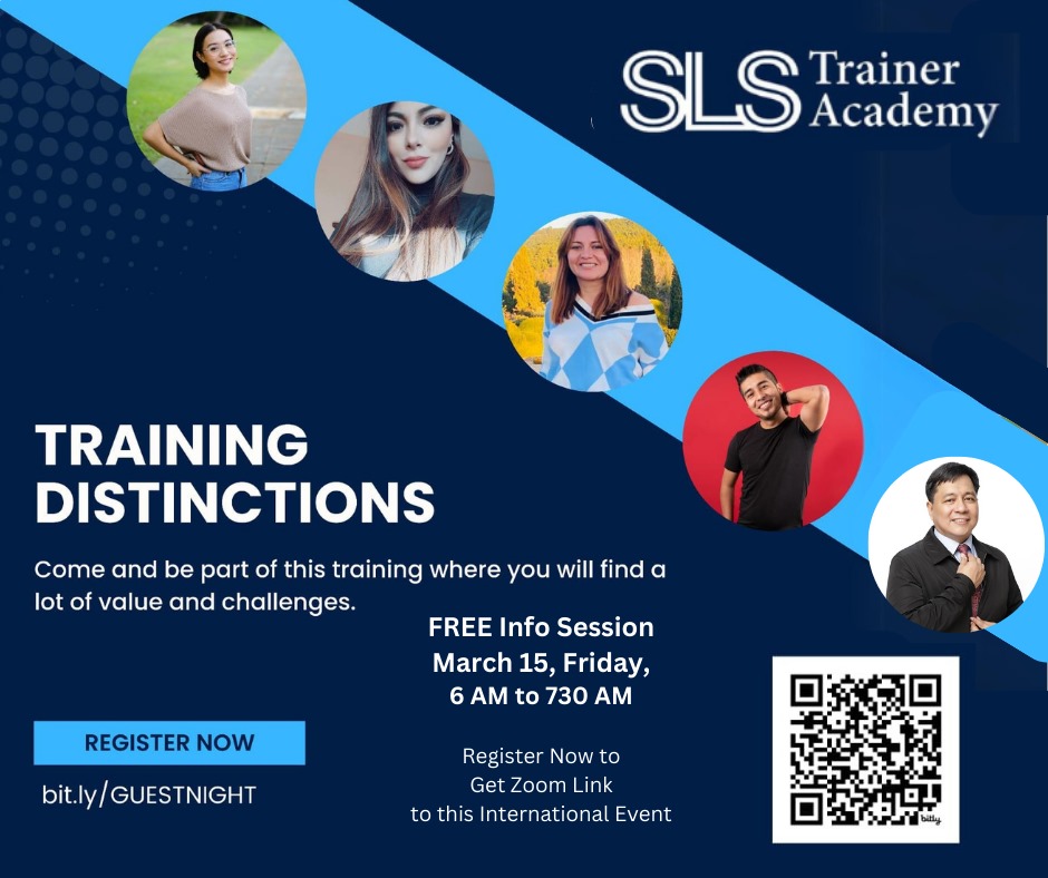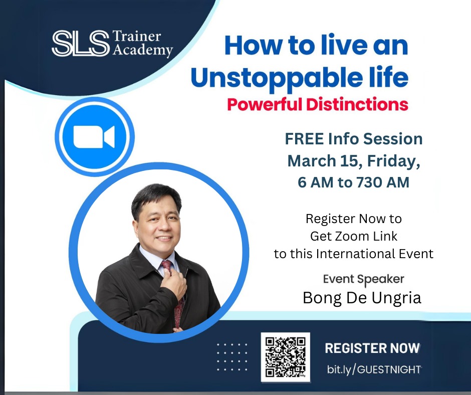 Transform your life into a journey of continuous breakthroughs and successes. On March 15, Friday, from 6:00 AM to 7:30 AM Philippine Time, immerse yourself in an exclusive Zoom Webinar hosted by the esteemed SLS Trainer Academy.