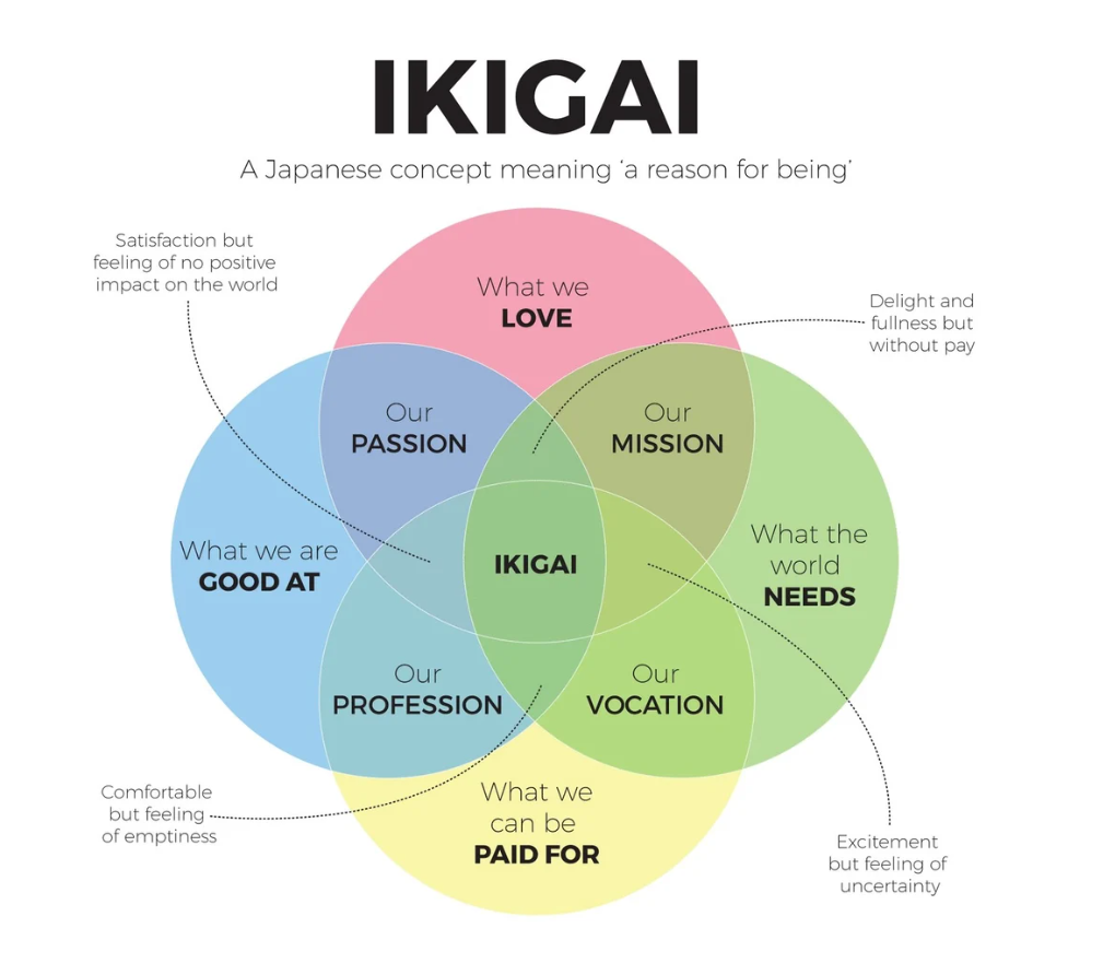 Ikigai is a Japanese concept that encapsulates finding one’s “reason for being.”