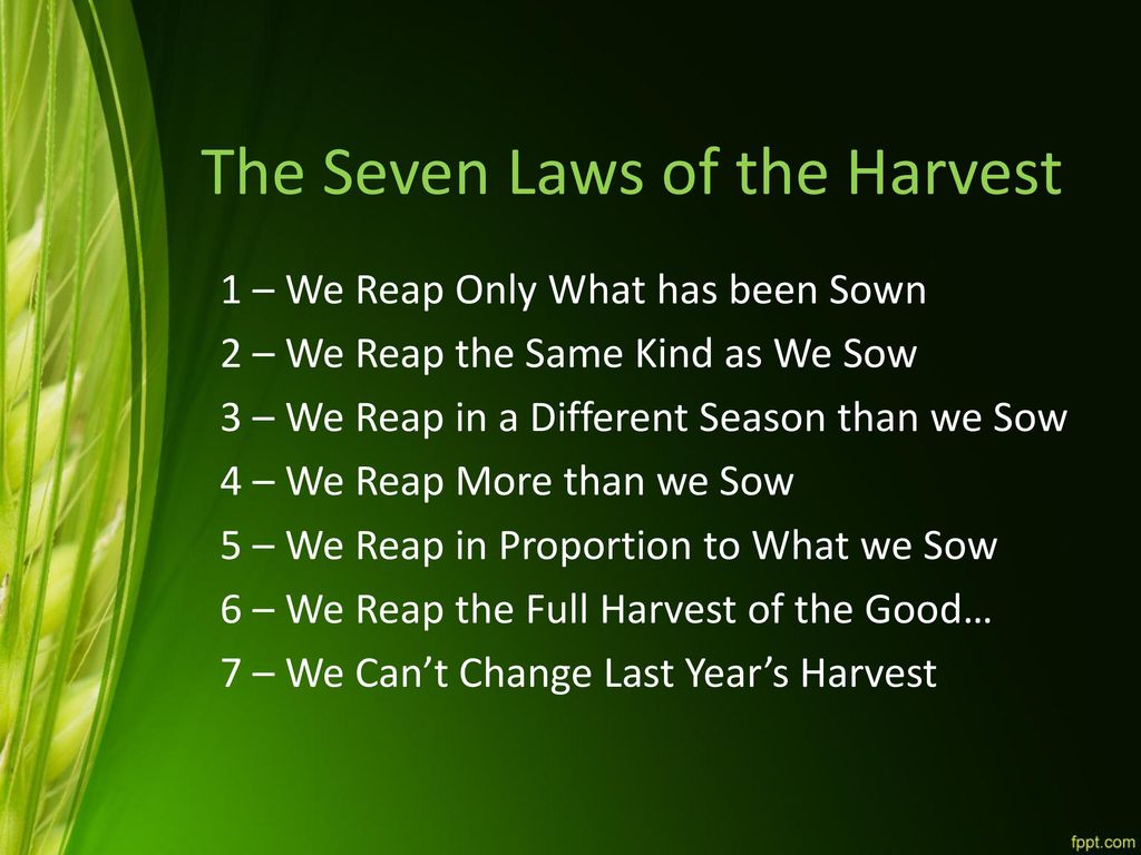To help explain the 2nd metaphor, the Law of the Harvest.