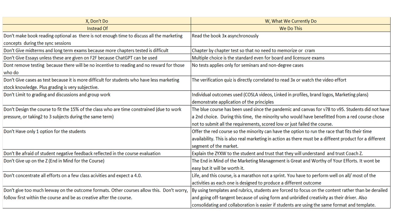 My end goal is this: To achieve the outcomes required by the Ateneo and the approved Marketing syllabus, we can and will not take shortcuts even if it will be very convenient to do so. So, this means reading the book, discussing key ideas of the concepts synchronously and asynchronously, submitting group and individual outcomes to prove that you know the fundamentals and applied it especially in a final marketing plan.